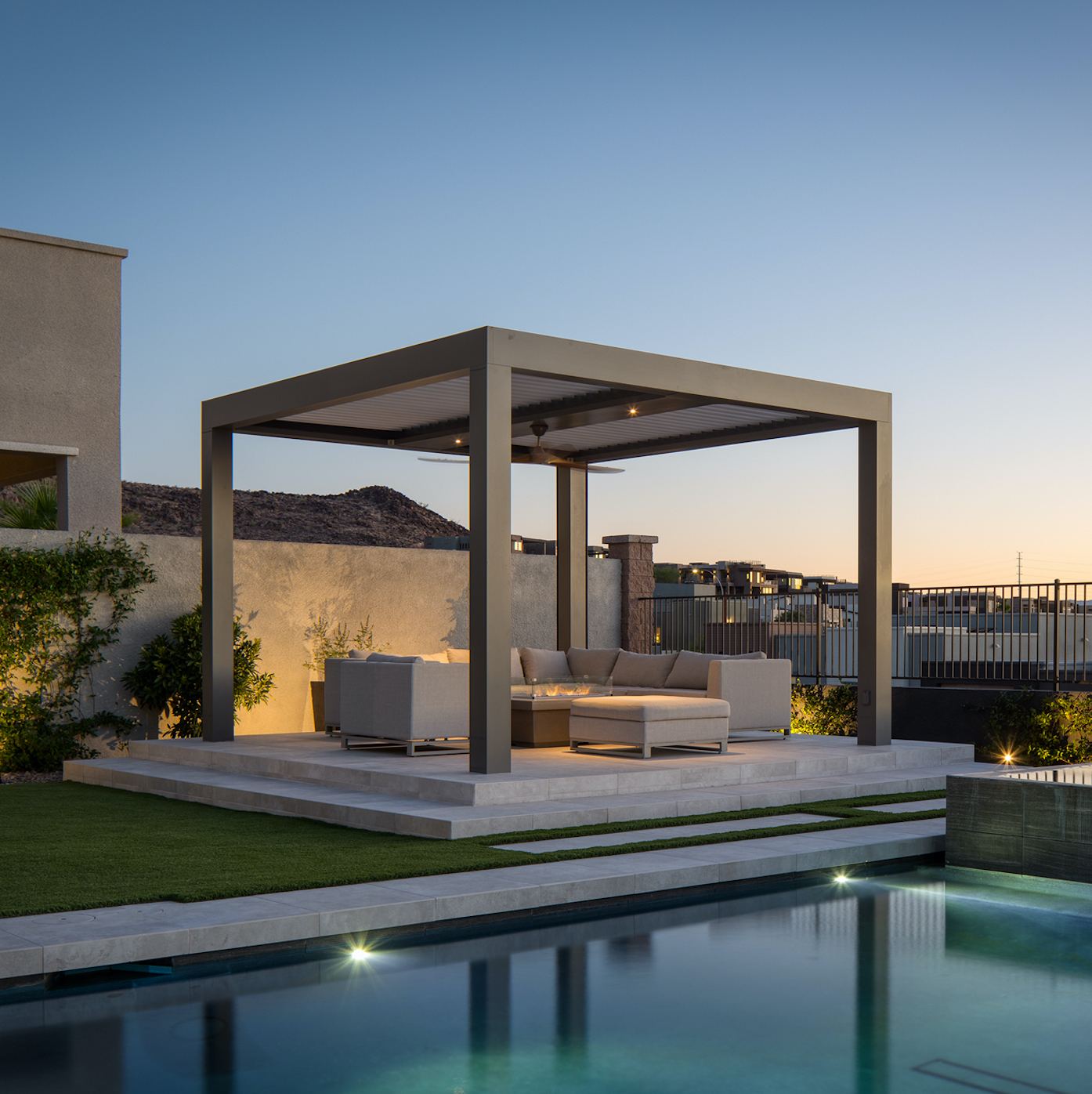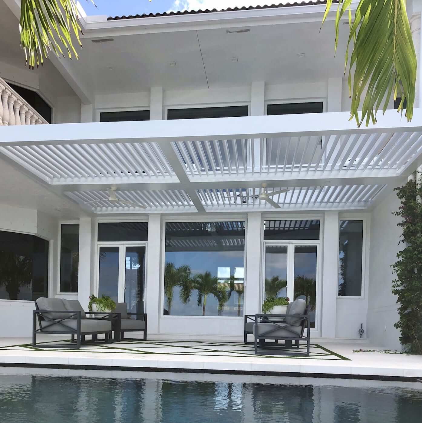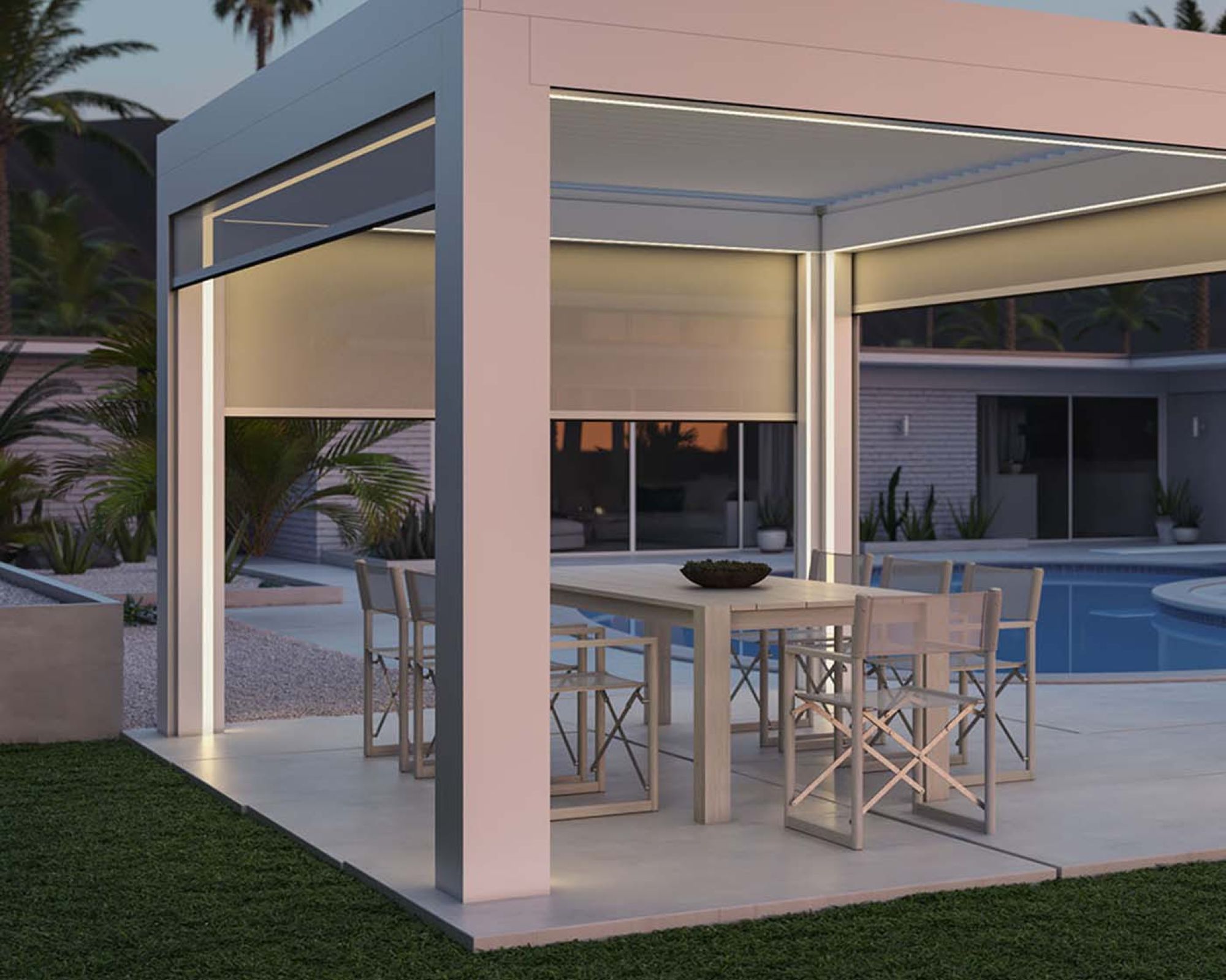 StruXure is the leader in luxury louvered pergolas and cabanas, designed to blur the lines between indoors and out. Built with fully extruded, powder-coated aluminum and smart motorized technology, every system is purpose-built for your space — engineered for durability, design flexibility, and all-season use. Whether you're hosting poolside gatherings or enjoying a quiet evening retreat, StruXure gives you precise control over sun, shade, ventilation, and ambiance at the touch of a button.