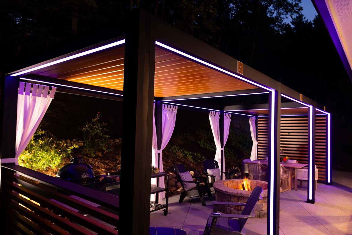 Illuminate your outdoor space with StruXure's advanced pergola lighting — seamlessly blending function and style. Choose from subtle downlighting for a warm post-sunset glow to vibrant LED strip lighting that sets the perfect ambiance for entertaining. Group or zone lights for a fully customized look, then automate via the StruXure app.